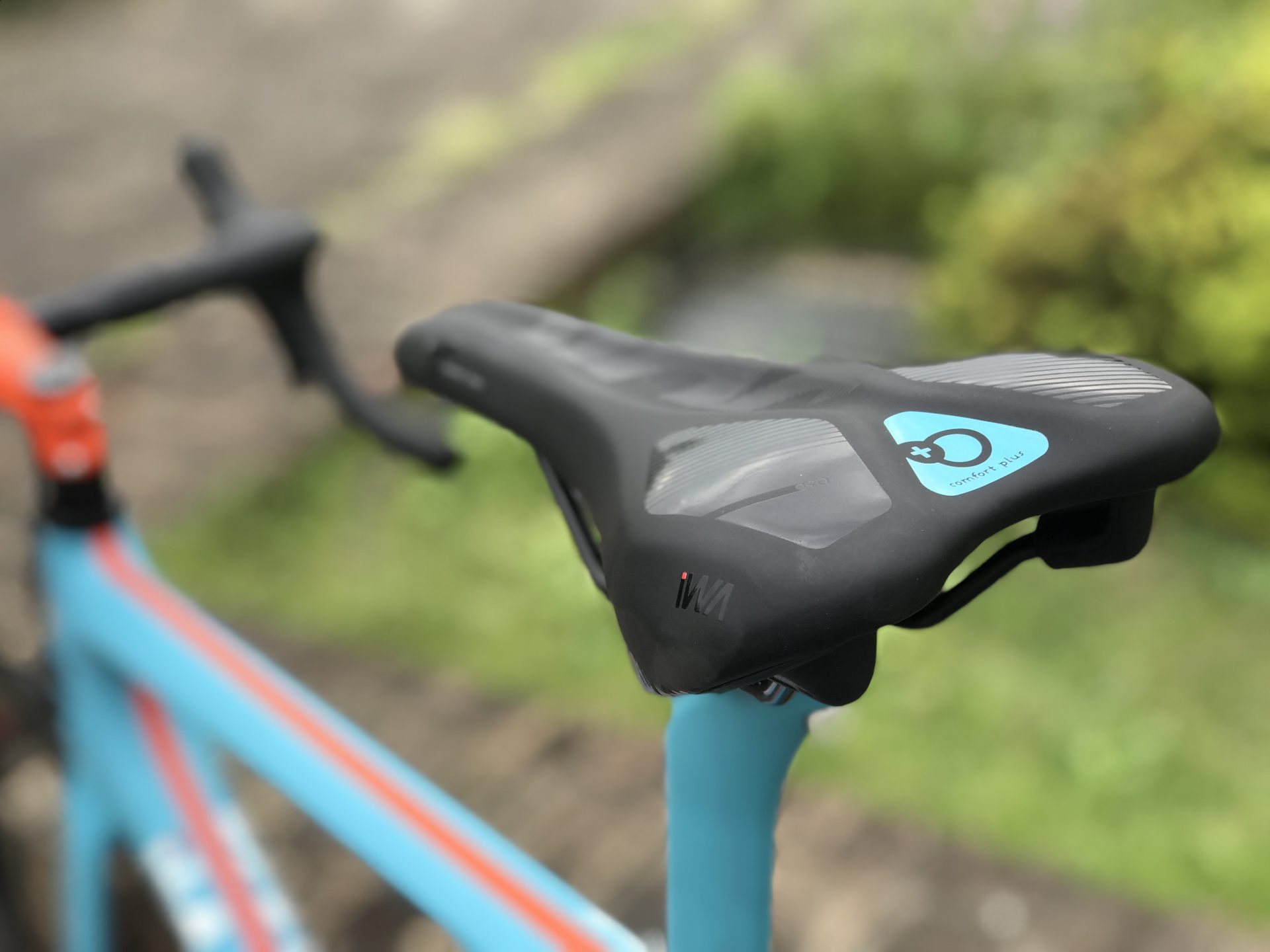 iWAでは、低反発素材と衝撃吸収素材の二つを組み合わせた、お尻に優しい「ハイブリッドサドル コンフォートプラス」をご用意しています。
